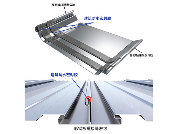 钢结构屋面体系中直立式屋面锁缝板咬合部位,屋面各式收边、钢板搭接处、屋面风机、管道开孔等部位。 310ml 胶管装请参照硅胶打法使用;5 加伦、55 加伦铁桶装须用专用打胶机在彩钢板生产线中涂胶,随现场温度的不同,可通过调节胶泵气压控制出胶量。